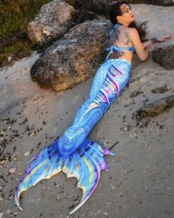 Enjoy the Crème de la Crème and revel in the comfort and beauty of our new wondrous Mertailor Whismy Fantasea Tail skin.  You will absolutely fall in love with the soft silky feel of the cushy luxurious Scuba knit material and be mesmerized by the brilliance of colors that practically glow as you glide through the water.   A breeze to slip in and out of, this tail skin has a snug 1” wide spandex waistband that will stay in place while swimming.  Made from 1mm thick poly spandex nylon knit fabric with a durable water repellant coating, this is the perfect tail solution for any water or posing experience.  The dye sublimated print ensures long lasting color. Made to fit the Mertailor Fantasea fin “Too”, tail skin has a side zipper at the fluke to allow for ease of insertion of your Fantasea fin.  Comfort plus comfort…and beautiful to boot!  It doesn’t get much better than this!Â