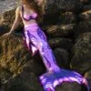 Enjoy the Crème de la Crème and revel in the comfort and beauty of our new wondrous Mertailor Whismy Fantasea Tail skin.  You will absolutely fall in love with the soft silky feel of the cushy luxurious scuba knit material and will be mesmerized by the brilliance of the colors that practically glow as you glide through the water.   A breeze to slip in and out of, this tail skin has a snug 1” wide spandex waistband that will stay in place while swimming.  Made from 1mm thick poly spandex nylon knit fabric with a durable water repellant coating, this is the perfect tail solution for any water or posing experience.  The dye sublimated print ensures long lasting color. Made to fit the Mertailor Fantasea fin “Too”, tail skin has a side zipper at the fluke to allow for ease of insertion of your Fantasea fin.  Comfort plus comfort…and beautiful to boot!  It doesn’t get much better than this!Â