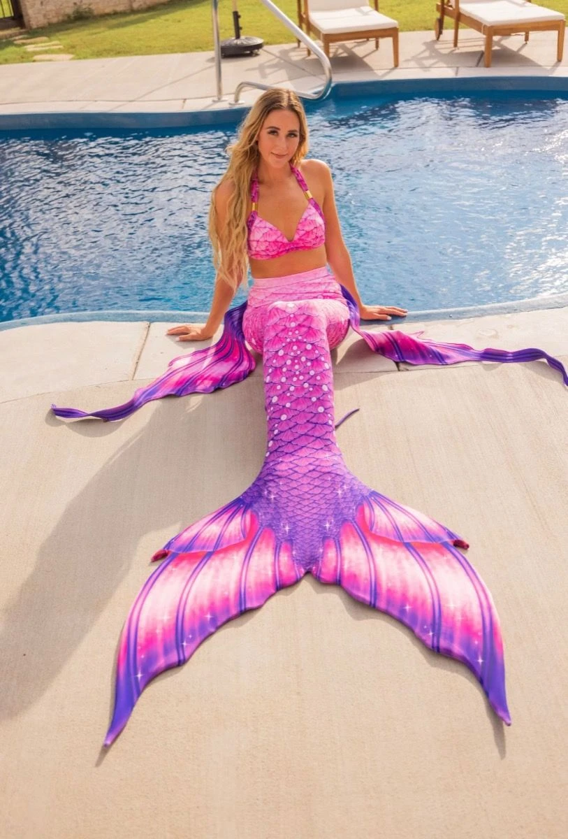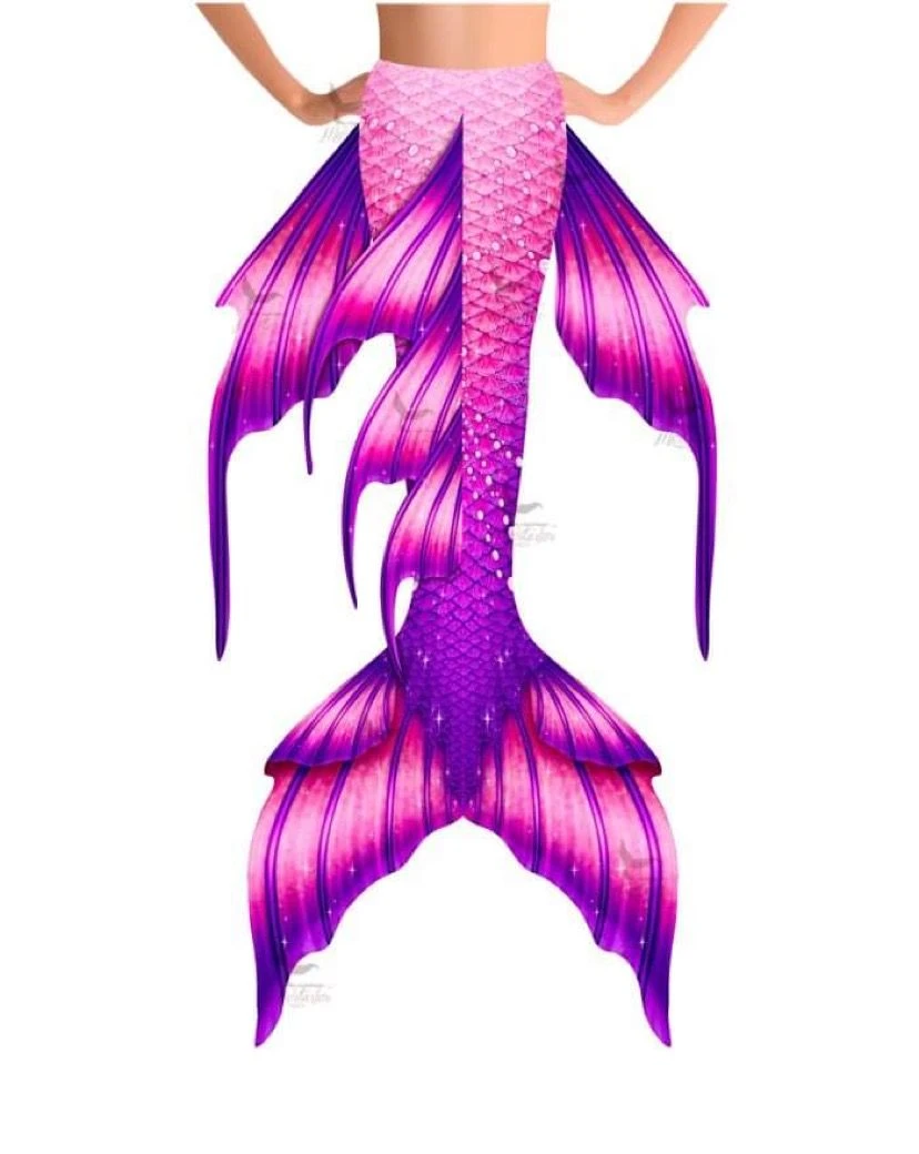 Enjoy the Crème de la Crème and revel in the comfort and beauty of our new wondrous Mertailor Whismy Fantasea Tail Skin. You will absolutely fall in love with the soft silky feel of the cushy luxurious scuba knit material and will be mesmerized by the brilliance of the colors that practically glow as you glide through the water. A breeze to slip in and out of, this tail skin has a snug 1” wide spandex waistband that will stay in place while swimming. Made from 1mm thick poly spandex nylon knit fabric with a durable water repellant coating, this is the perfect tail solution for any water or posing experience. The dye sublimated print ensures long lasting color. Made to fit the Mertailor Fantasea fin Three, tail skin has a side zipper at the fluke to allow for ease of insertion of your Fantasea fin. Comfort plus comfort…and beautiful to boot! It doesn’t get much better than this!