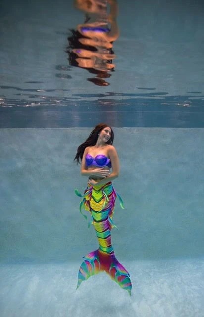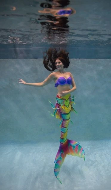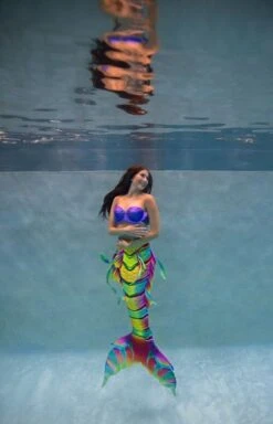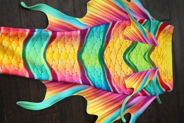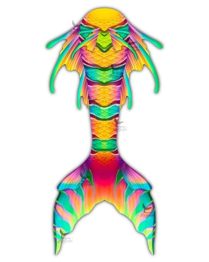 Enjoy the Crème de la Crème and revel in the comfort and beauty of our new wondrous Mertailor Whismy Fantasea Tail Skin. You will absolutely fall in love with the soft silky feel of the cushy luxurious scuba knit material and will be mesmerized by the brilliance of the colors that practically glow as you glide through the water. A breeze to slip in and out of, this tail skin has a snug 1” wide spandex waistband that will stay in place while swimming. Made from 1mm thick poly spandex nylon knit fabric with a durable water repellant coating, this is the perfect tail solution for any water or posing experience.  The dye sublimated print ensures long lasting color. Made to fit the Mertailor Fantasea fin Three, tail skin has a side zipper at the fluke to allow for ease of insertion of your Fantasea fin.  Comfort plus comfort…and beautiful to boot!  It doesn’t get much better than this!Â