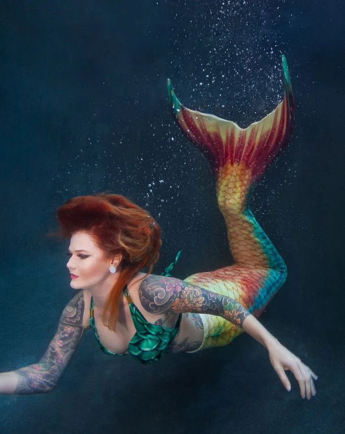 Enjoy the Crème de la Crème and revel in the comfort and beauty of our new wondrous Mertailor Whismy Fantasea Tail skin.  You will absolutely fall in love with the soft silky feel of the cushy luxurious scuba knit material and will be mesmerized by the brilliance of the colors that practically glow as you glide through the water.   A breeze to slip in and out of, this tail skin has a snug 1” wide spandex waistband that will stay in place while swimming.  Made from 1mm thick poly spandex nylon knit fabric with a durable water repellant coating, this is the perfect tail solution for any water or posing experience.  The dye sublimated print ensures long lasting color. Made to fit the Mertailor Fantasea fin, tail skin has a side zipper at the fluke to allow for ease of insertion of your Fantasea fin.  Comfort plus comfort…and beautiful to boot!  It doesn’t get much better than this!Â